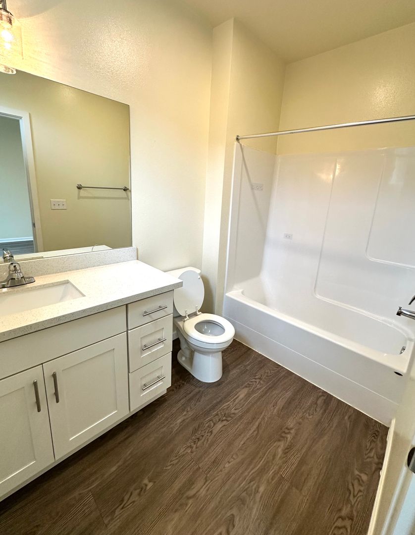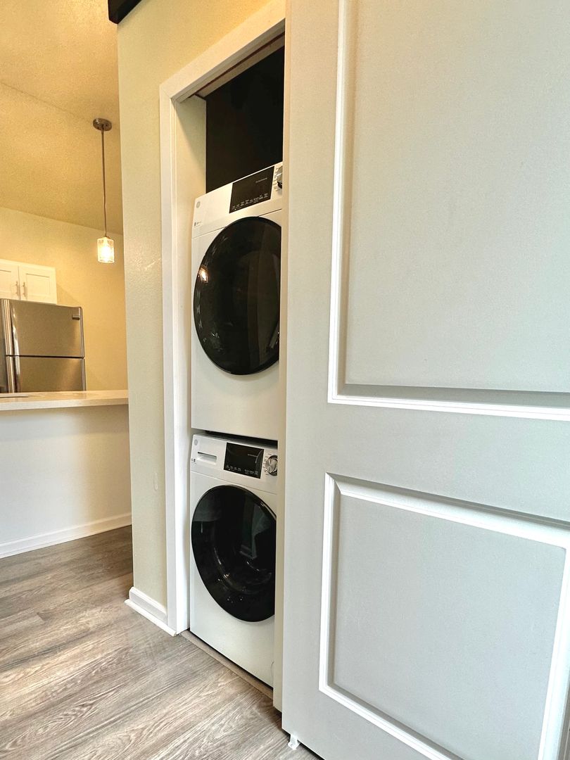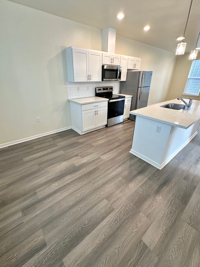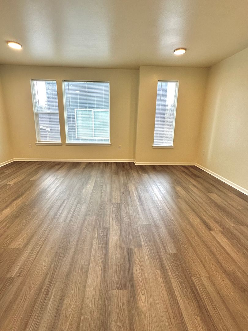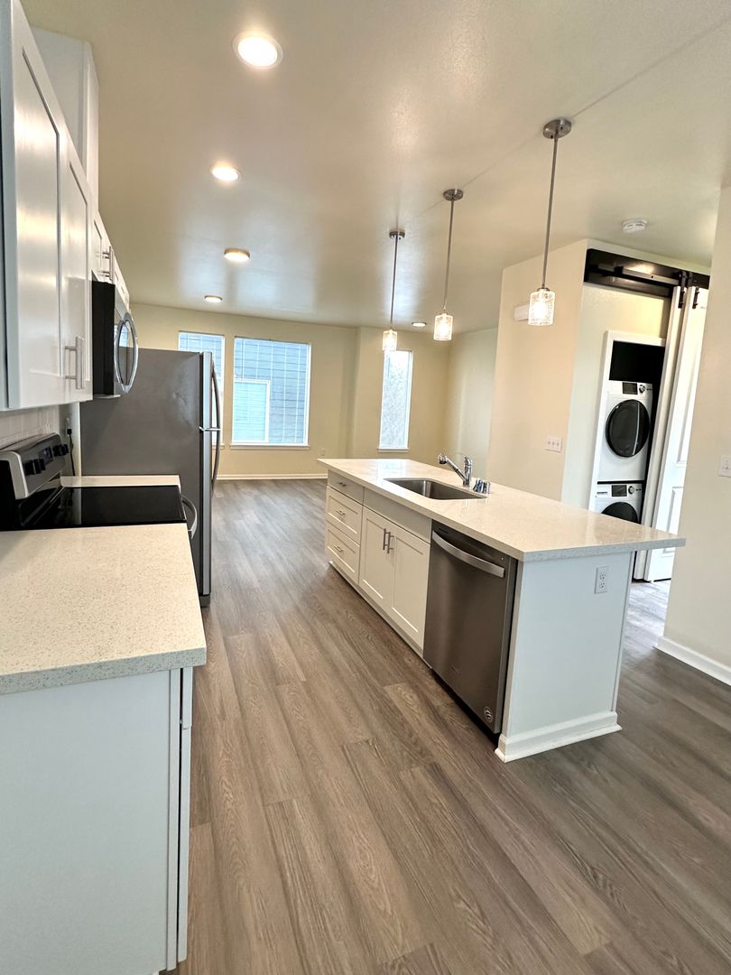 Welcome to this beautifully designed, newly built two-bedroom, two-bath townhome located in a private gated community. This spacious home features large windows that bring in abundant natural light, creating a bright and inviting atmosphere. Luxury vinyl flooring runs throughout the main living areas, with carpeting on the stairs for added comfort. A full-size washer and dryer are conveniently located in the unit for everyday ease. Situated in a small, well-maintained community, residents enjoy a quieter living environment while still being close to shopping, daily conveniences, and major commuting routes. Call us to schedule a tour!